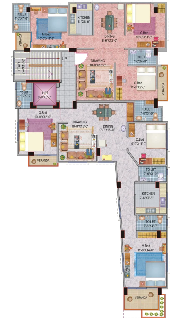 Located in one of the city’s fastest-growing neighborhoods, this Residential project in Road No-1,Shah Garibullah H/s, Near By GEC, Khulshi-1, Chattogram is built to offer practical, well-designed homes with long-term value. Standing at Groud Floor Parking + 7, the development includes 2 smartly planned residential units, tailored for both families and professionals.